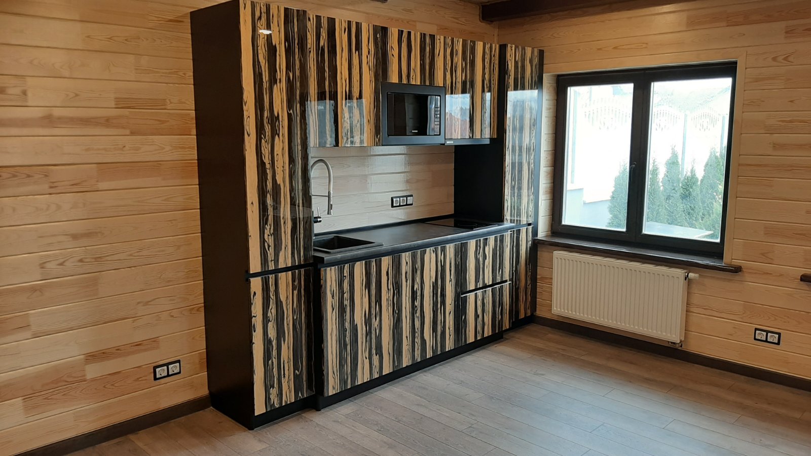 Фасад - МДФ Техно-1 «каштан», Корпус из ДСП 16 мм, столешница - «белая крошка».