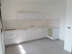 код 114897Фасады молочного цвета, открытые полки на торце гарнитура, качественные материалы.
