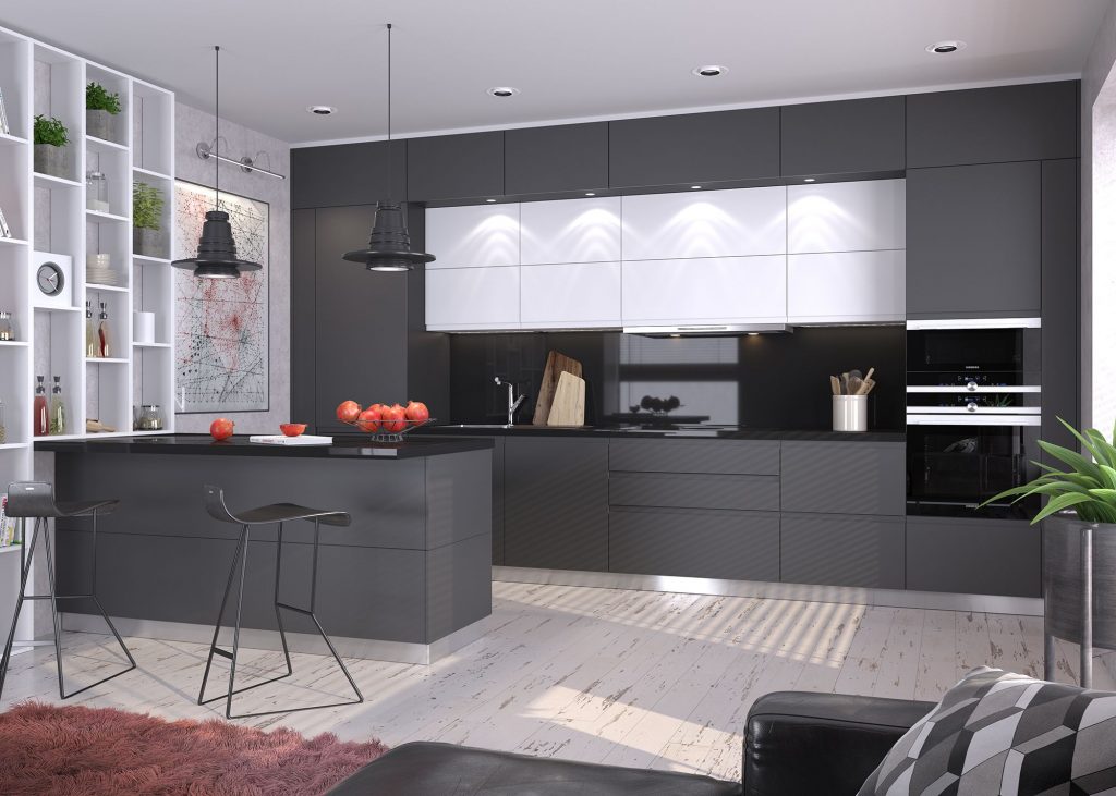 Фасады двух цветов из МДФ с матовой поверхностью.