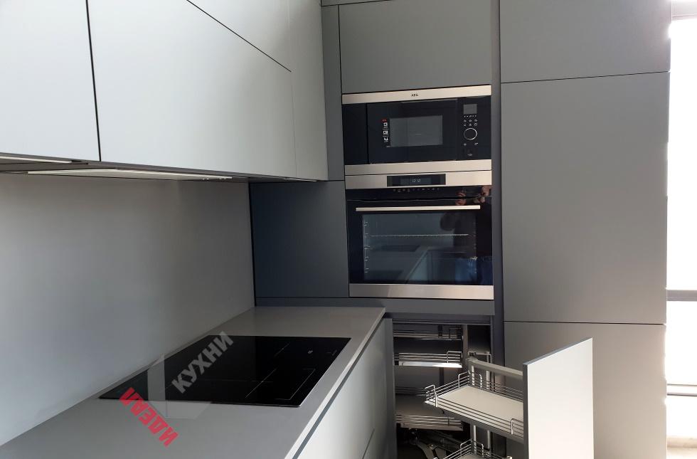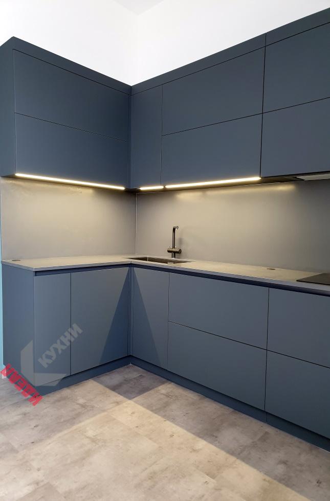 Кухня из нанотехнологичного материала. Вместительные фасады. Установлена подсветка.