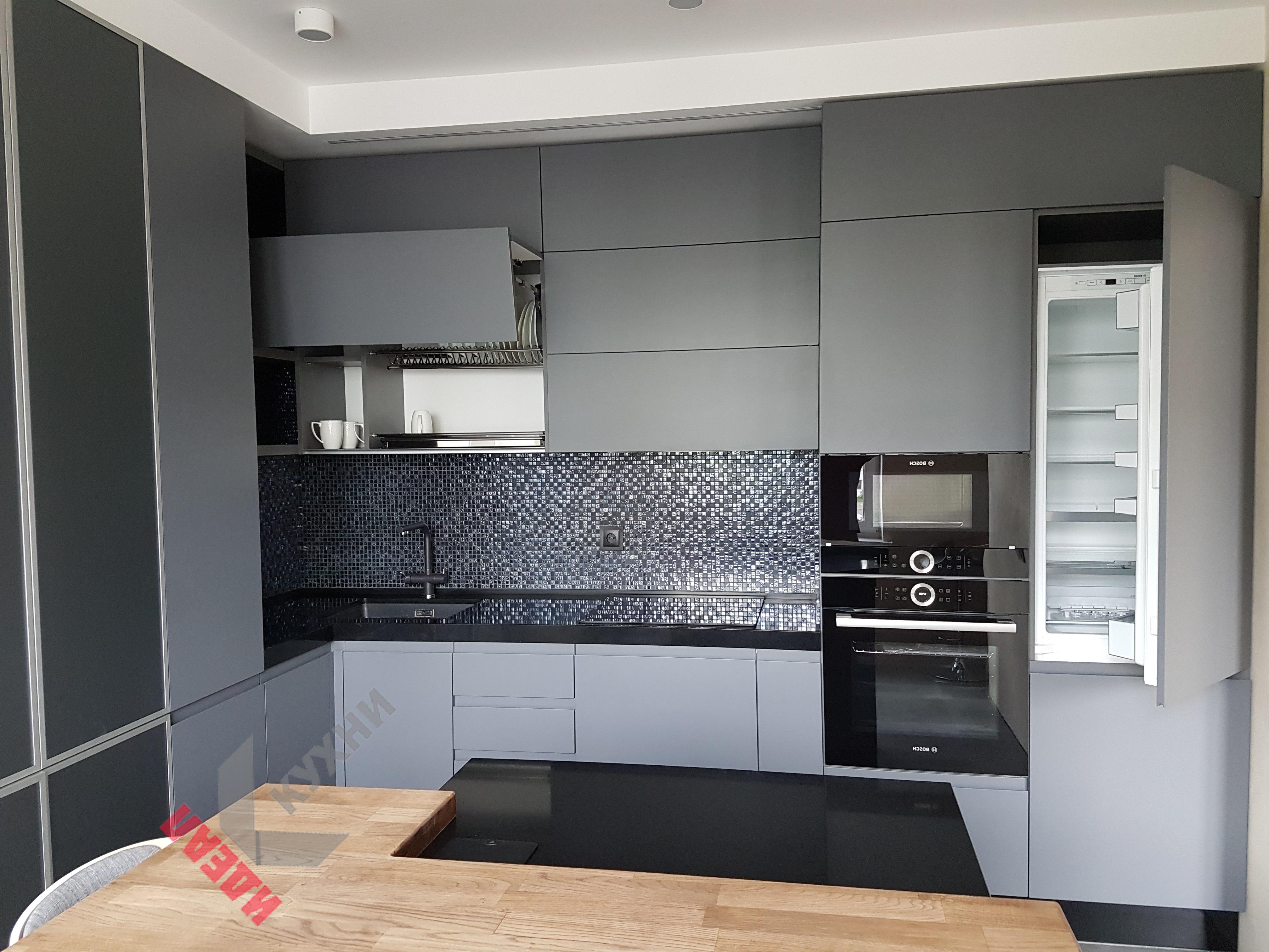 код 103429Выполнена в сером цвете. Верхние фасады с системой открывания Tip-On.