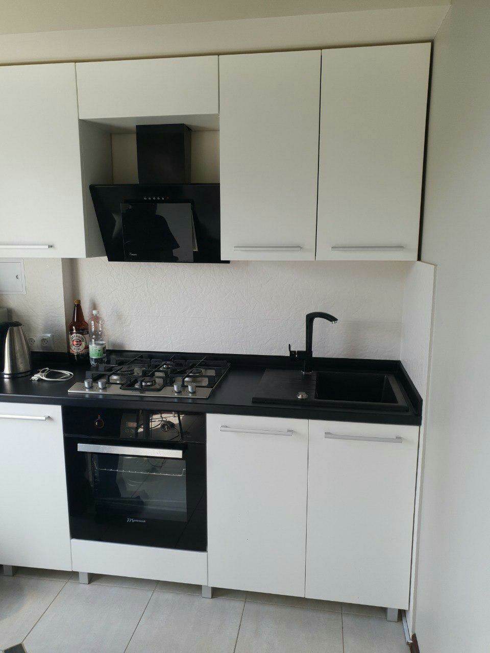 Современная кухня со столешницей и фурнитурой в комплекте.