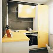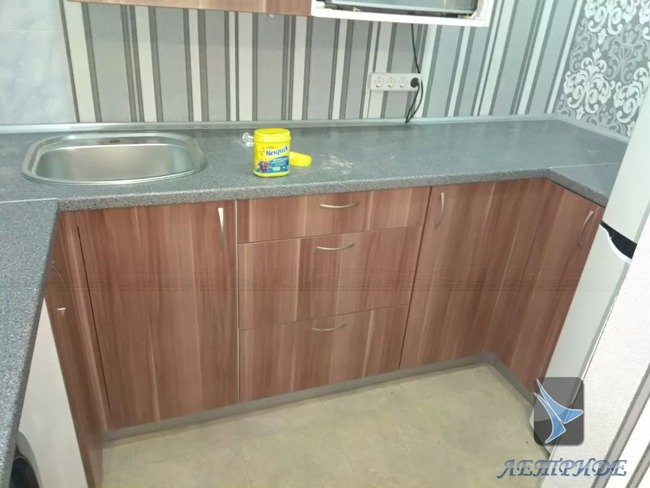 Кухня длиной 140 см. Фасады из ДСП двух цветов.