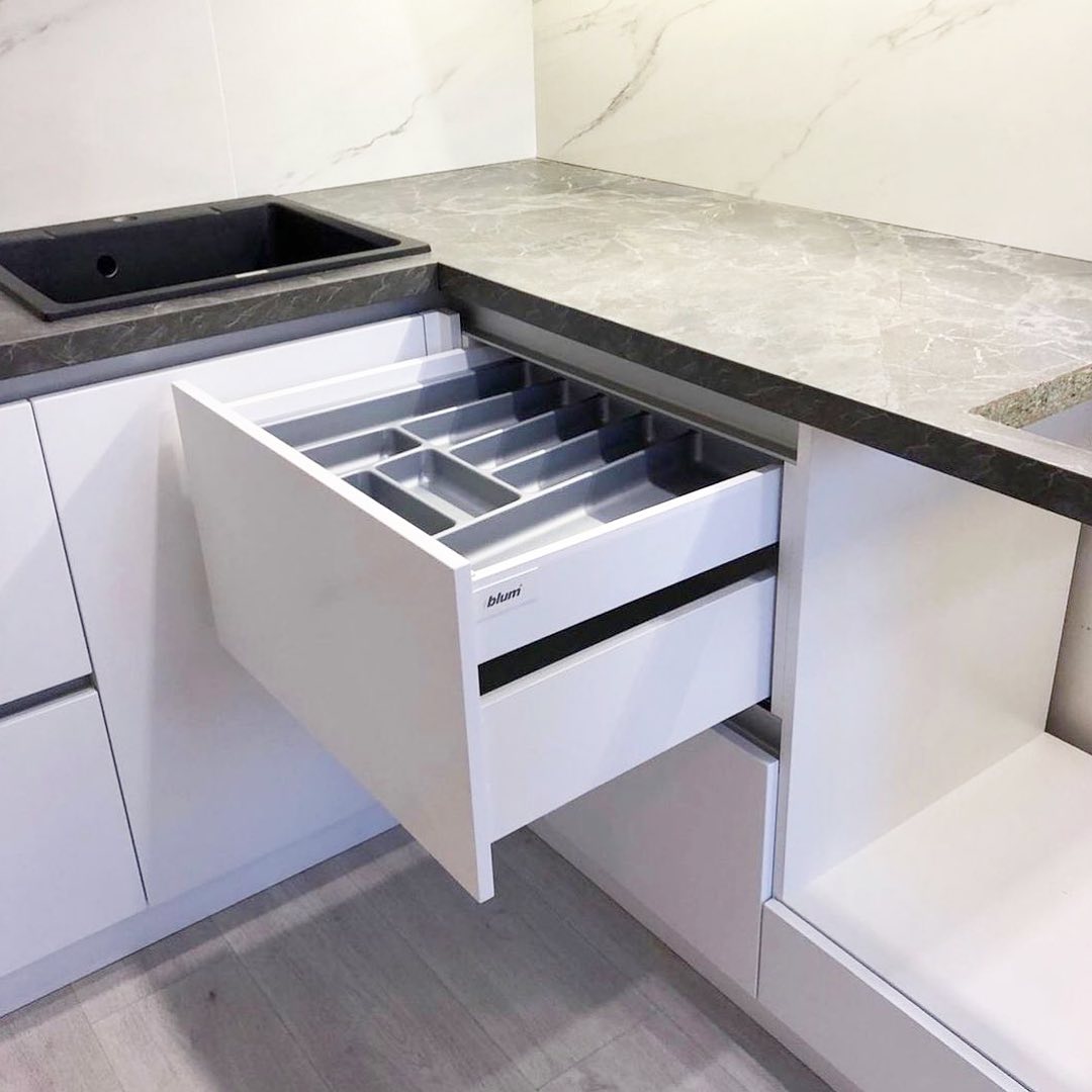 Современная кухня в скандинавском стиле. Светлые фасады из ДСП.
