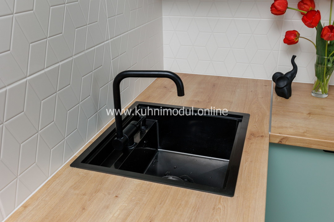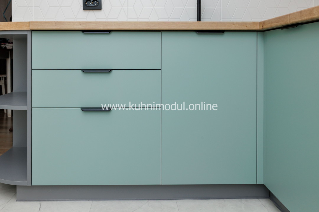 Комплектация: выдвижные ящики СТАРТ, газлифты GTV, петли Blum Clip Top Blumotion и GTV с доводчиками, столешница из ЛДСП.