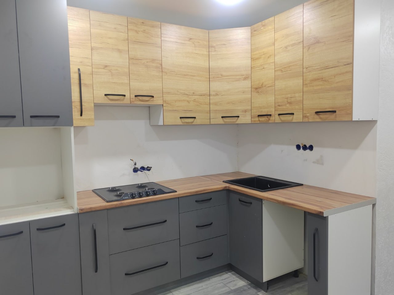 Длина кухни: 1.2х3.0х1.2 м. Материал фасада: ЛДСП.
