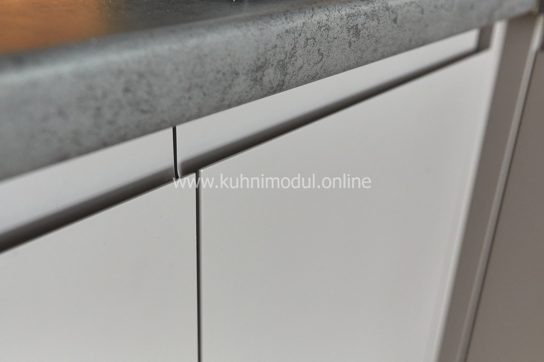 Комплектация: выдвижные ящики Hettich Quadro, толкатель HAFELE Type 2 Push-to-Open с адаптером, подъемный механизм Blum Aventos, газлифты GTV, петли Blum Clip Top Blumotion и GTV с доводчиками, столешница из ЛДСП.