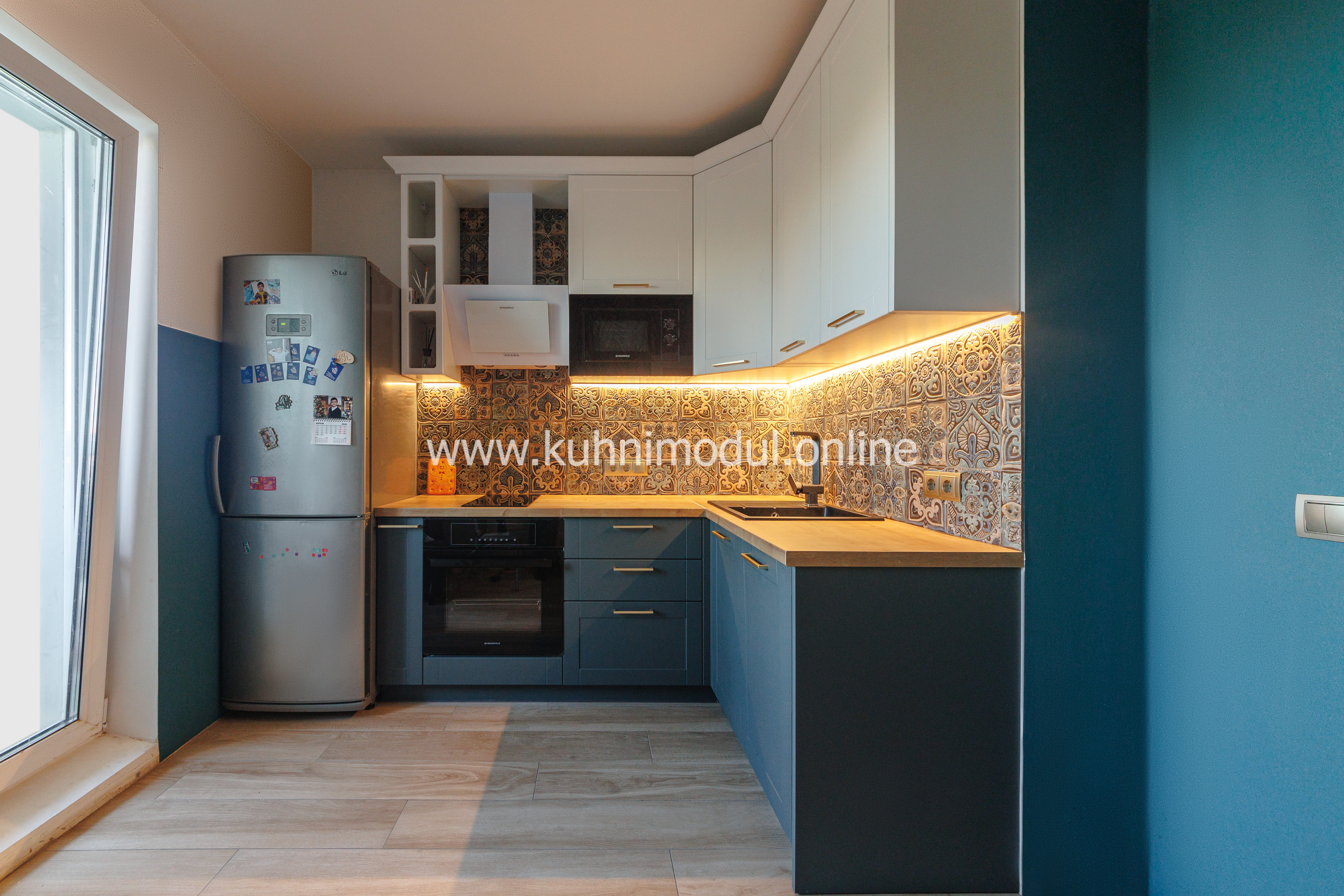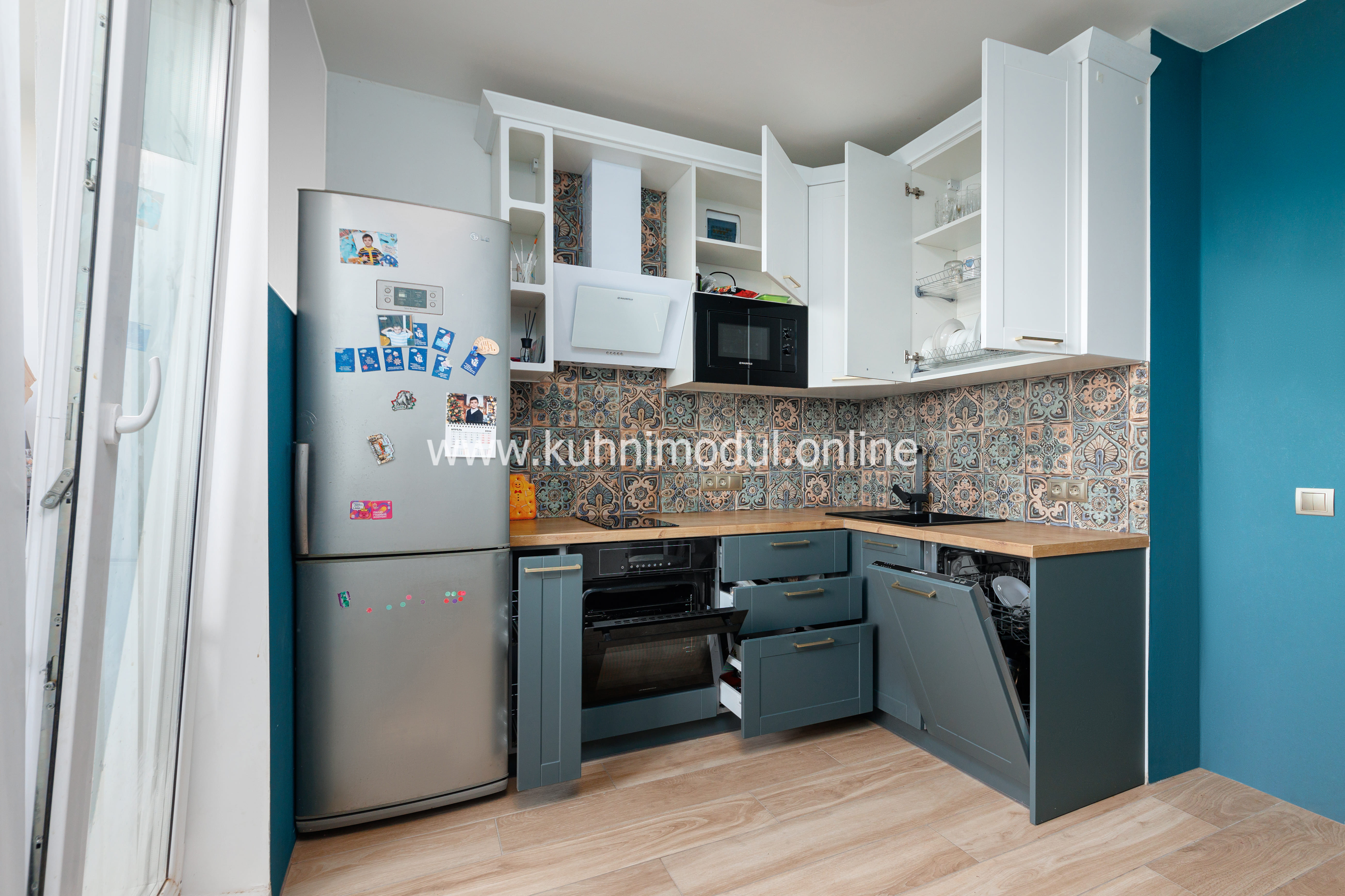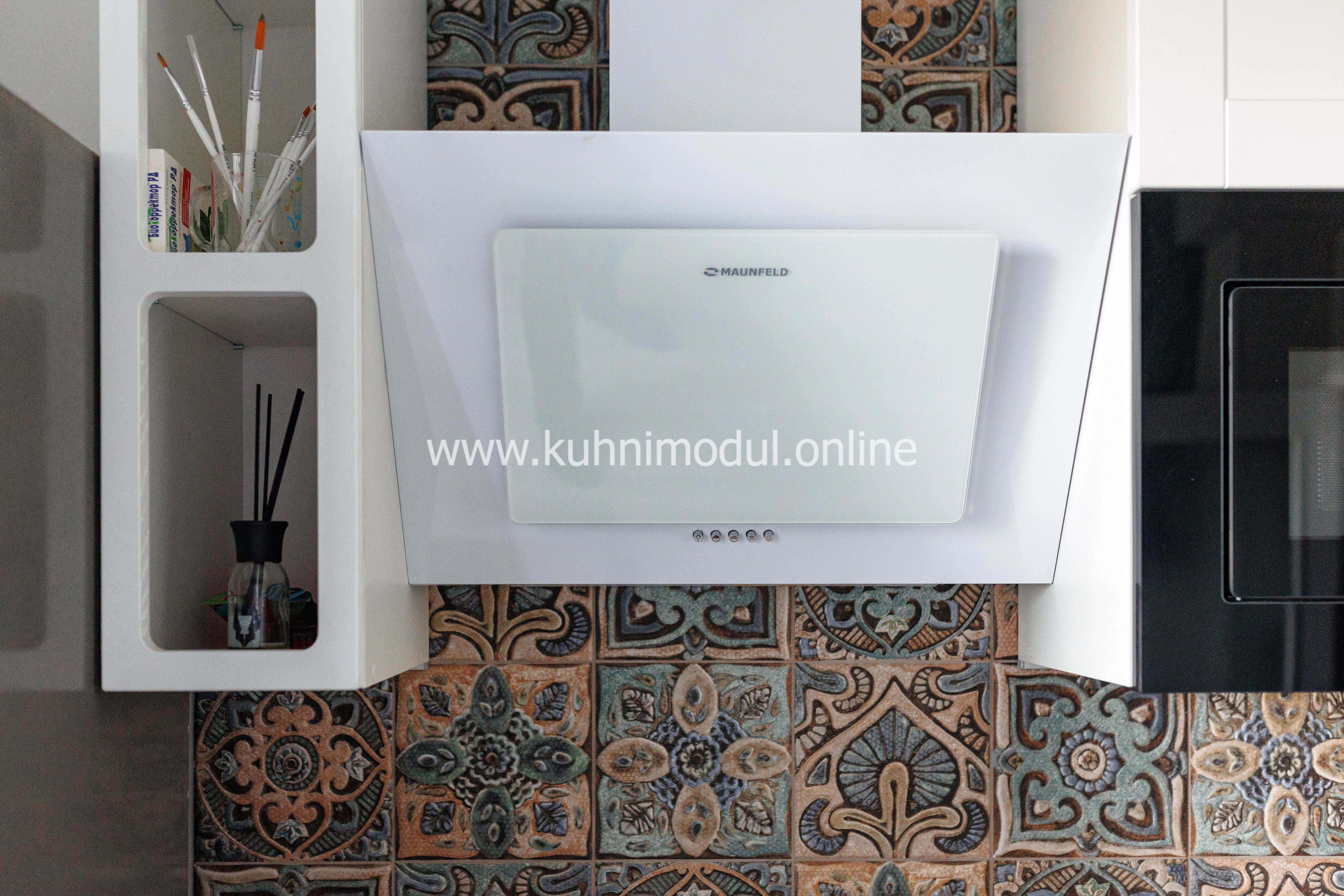 Фасады: МДФ белый матовый, ДСП Egger. Фурнитура: BLUM (Австрия).