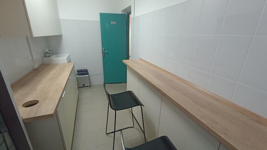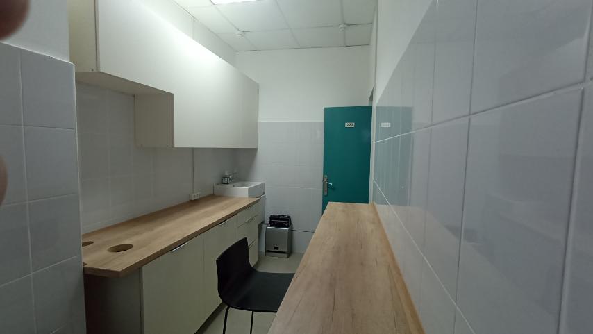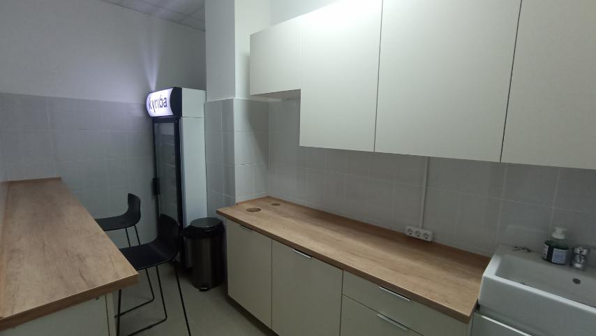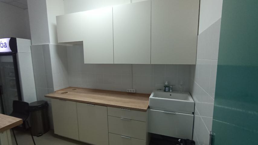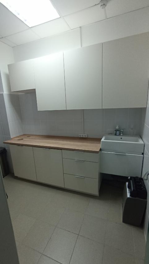 Множество зон хранения. Столешница с текстурой под мрамор.
