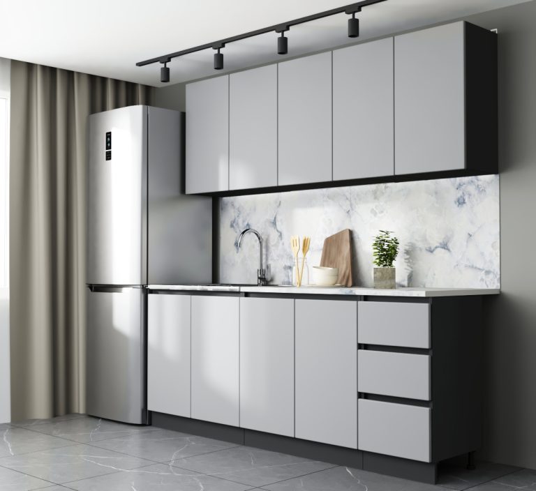 Прямая кухня «Оля» МДФ 2.2 м, мрамор серый/мрамор графитовый