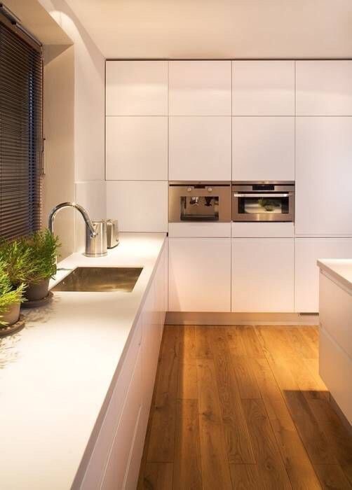 Современная П-образная кухня с пеналами