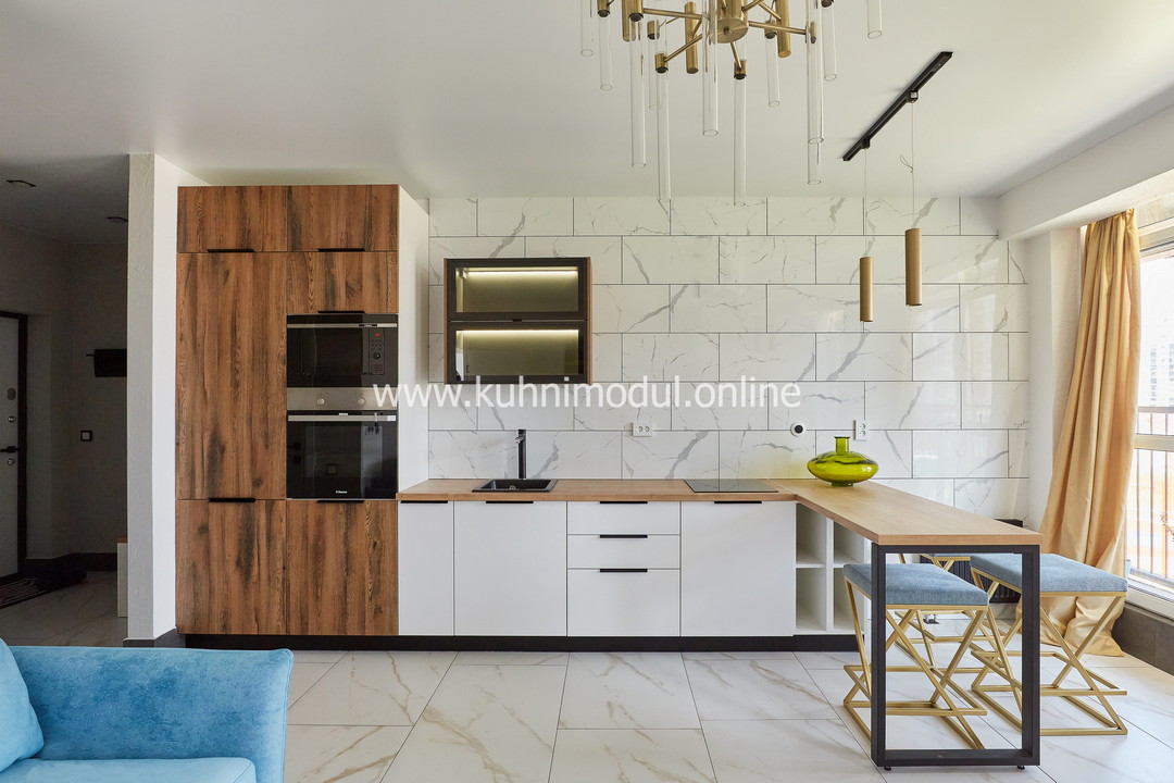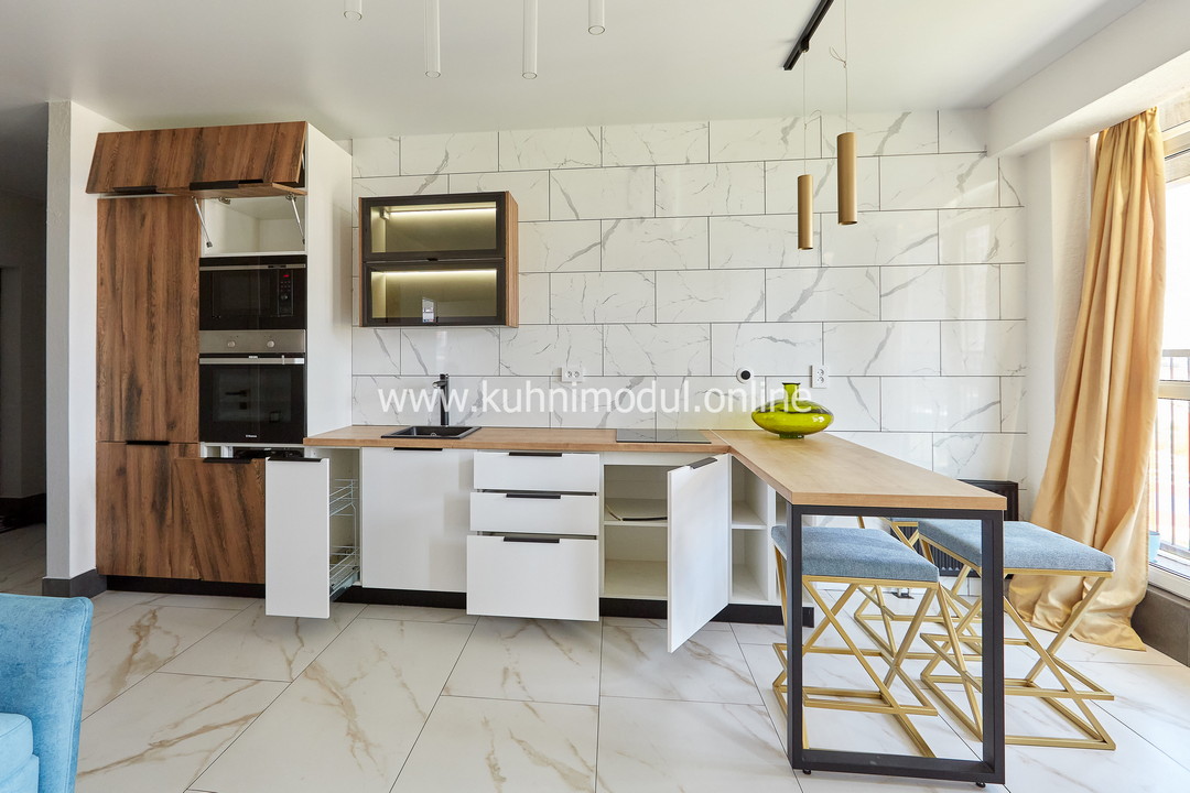 Комплектация: выдвижные ящики Hettich Quadro, газлифты GTV, петли Blum Modul и GTV с доводчиками, столешница из ЛДСП.