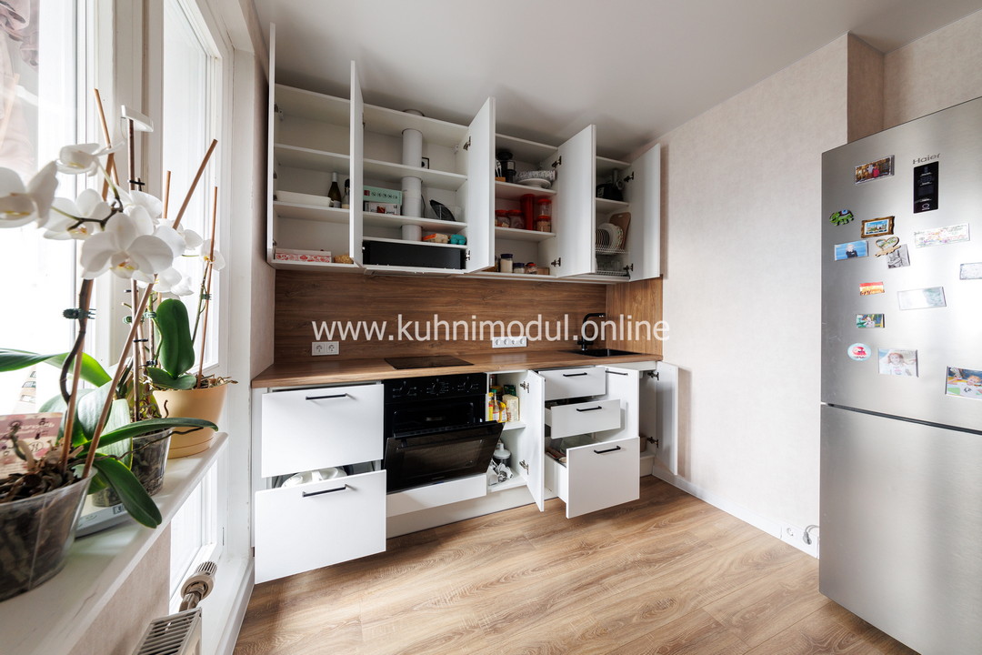 Эта кухня не только практична, но и стильно оформлена, что делает её отличным выбором для тех, кто ценит качество и дизайн. Создайте идеальное место для готовки и семейных ужинов, не жертвуя свободным пространством!