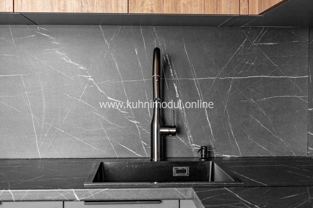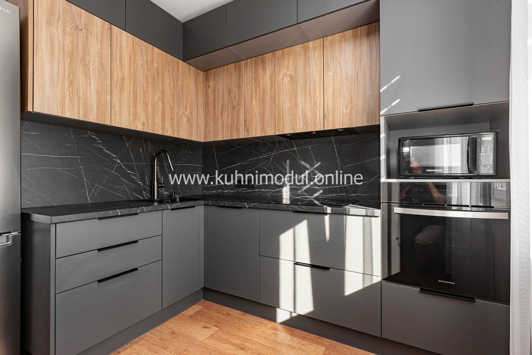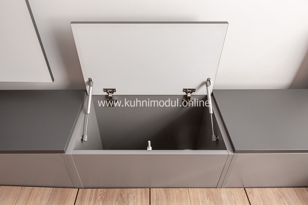 Комплектация: выдвижные ящики Quadro, толкатели BOYARD Push-to-Open с адаптером и Maco Push-to-Open с адаптером, газлифты GTV, петли Blum Clip Top Blumotion с доводчиками, столешница из ЛДСП.