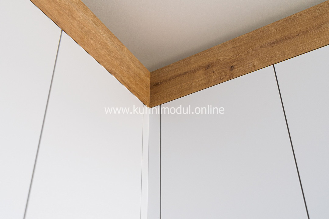 Декор фрезеровкой на фасадах. Бежевый цвет.