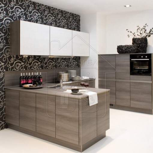 Кухня с пластиковыми фасадами с комбинированным цветом
