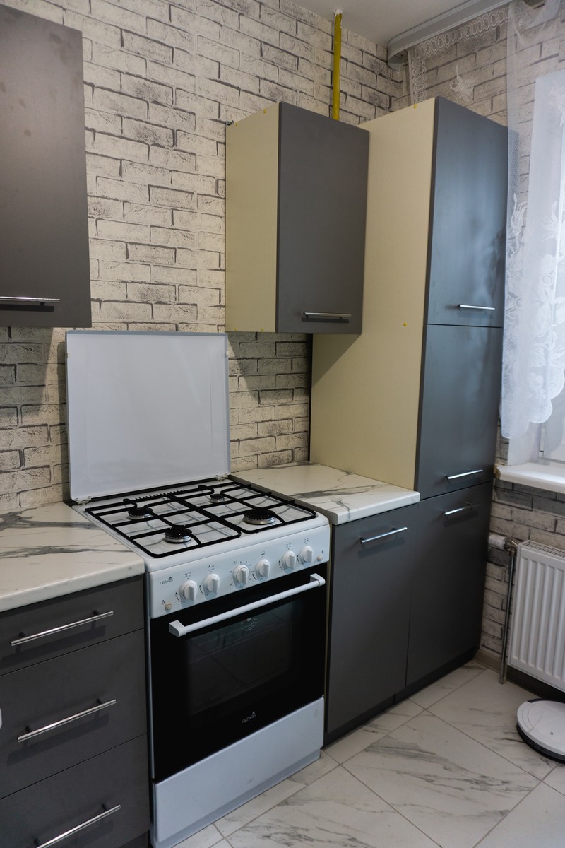 Длина кухни: 1.2х3.0х1.2 м. Материал фасада: ЛДСП.