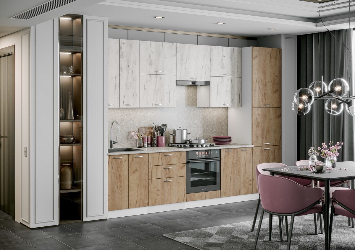 Модульная кухня «Виола Нео №5 Дуб крафт белый / Дуб крафт золотой»
