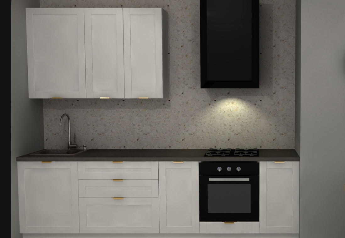 Материал фасада и корпуса: ЛДСП 16 мм. Ширина кухни 250 см.
