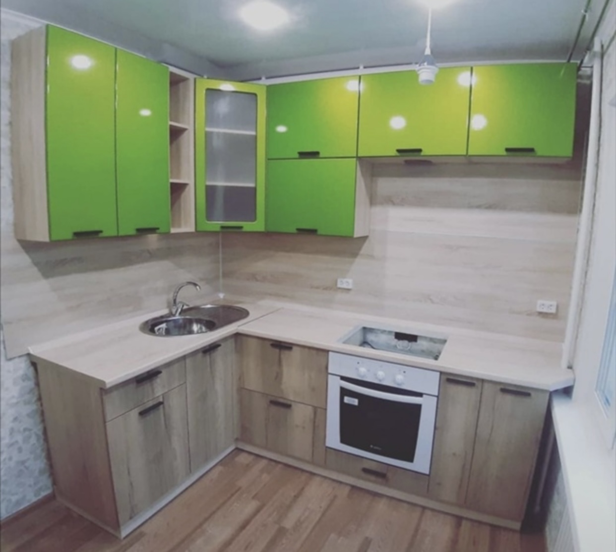 Комбинированные фасады из МДФ. Ширина кухни 200 см.