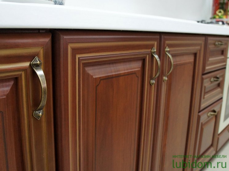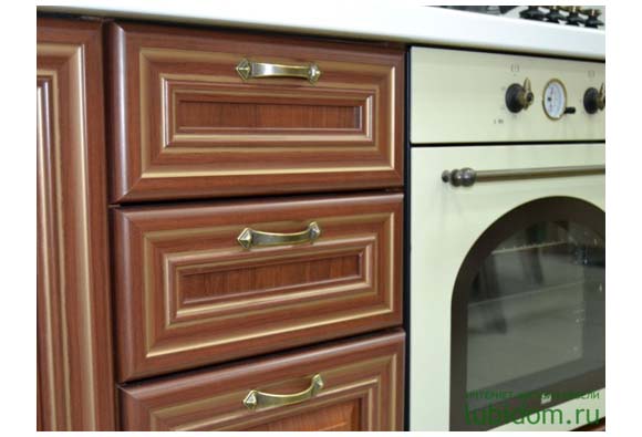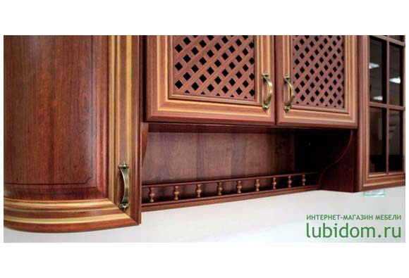 Классический кухонный гарнитур представлен с разными по своей отделке фасадами: с решетками, стеклянными вставками или планками. В качестве декора также предлагаются такие декоративные элементы, как пилястры, баллюстрады и карнизы. Кухня изготовлена из качественных материалов и снабжена современной фурнитурой, которая обеспечивает плавное выдвигание ящиков и закрывание дверей.