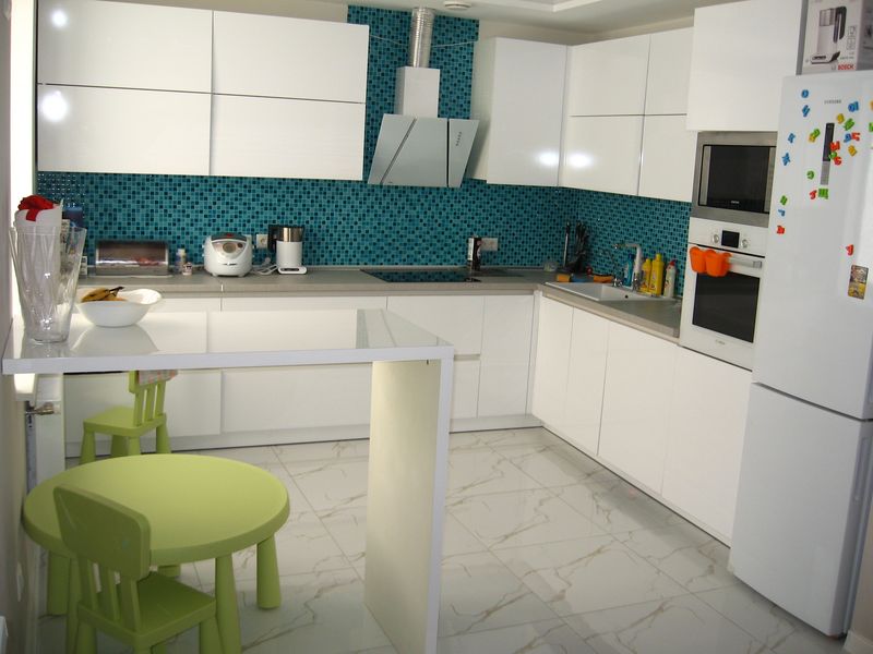 Глянцевое покрытие фасадов. Ниши для кухонной техники.