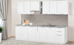 Материал фасада и корпуса: ЛДСП 16 мм. Ширина кухни 260 см.