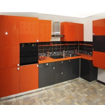 Кухня прямая «Агата» 1.2 м Ясень шимо темный - Оранжевый