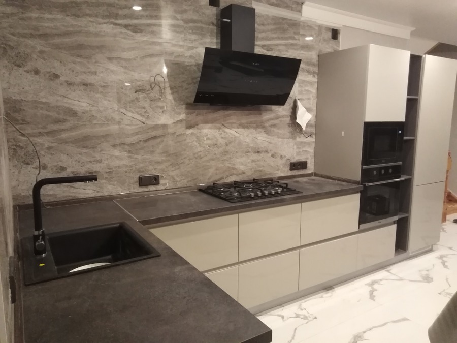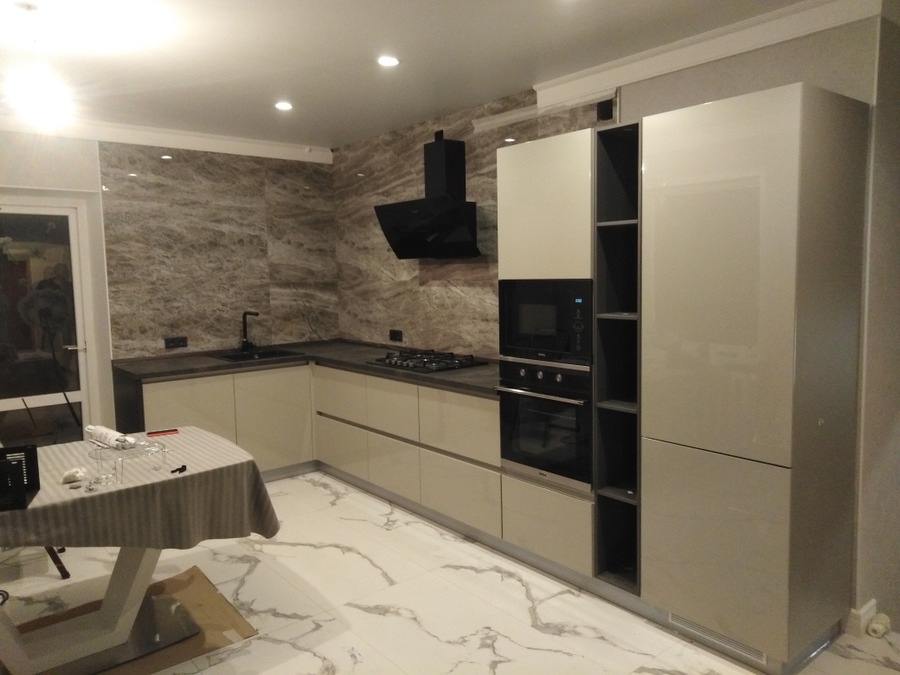 Фасады без ручек, ниши для техники, стильный дизайн. Фурнитура BLUM.