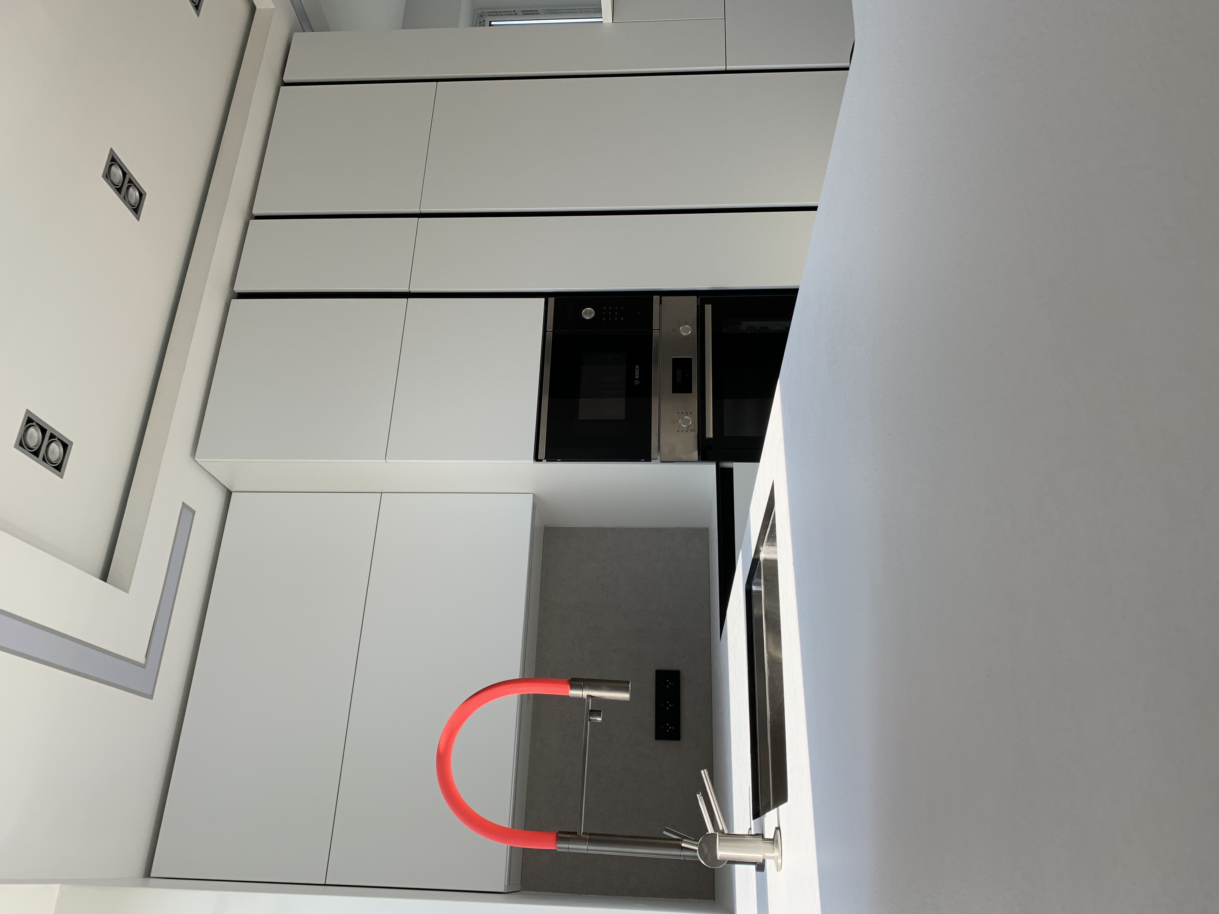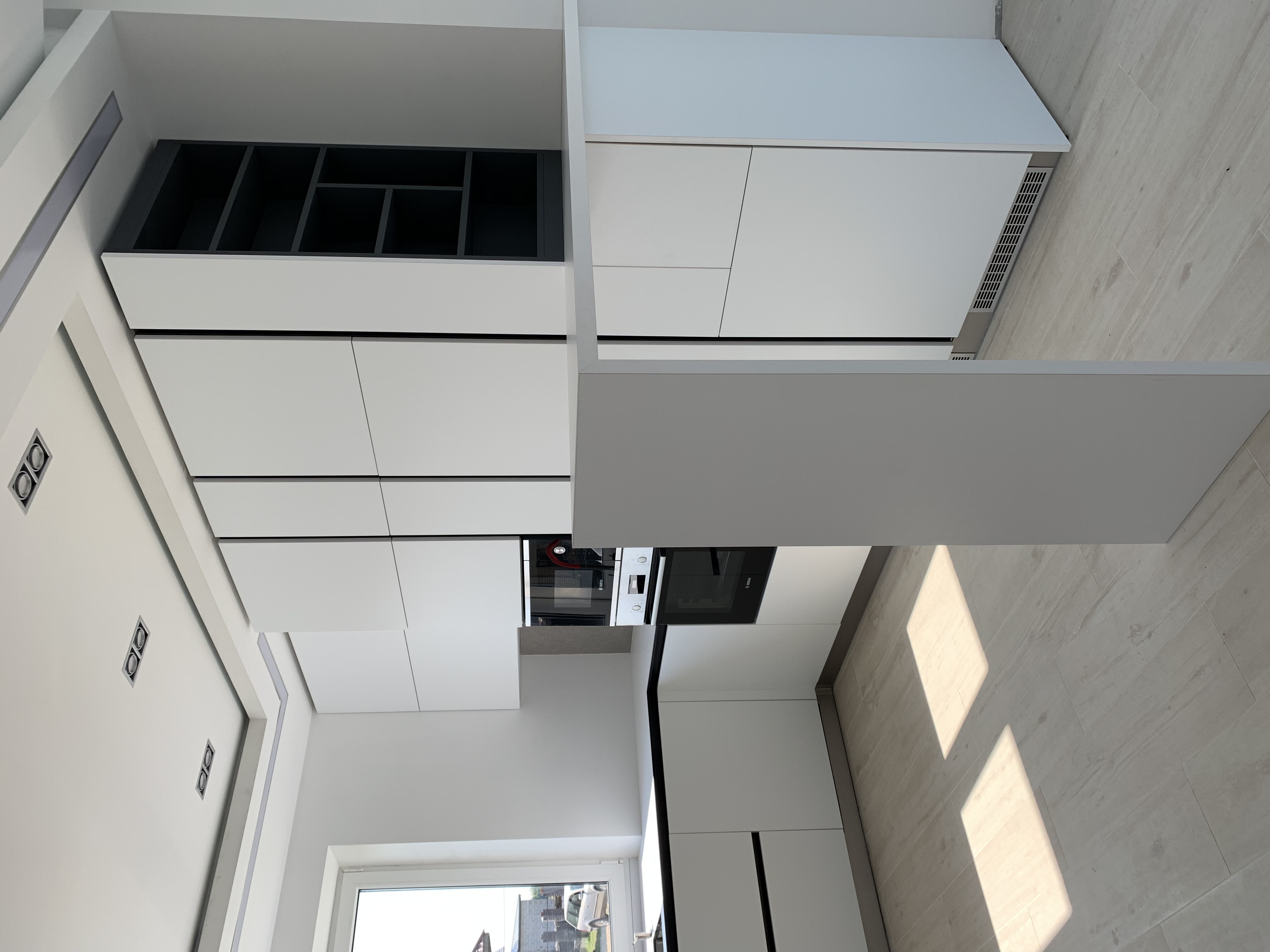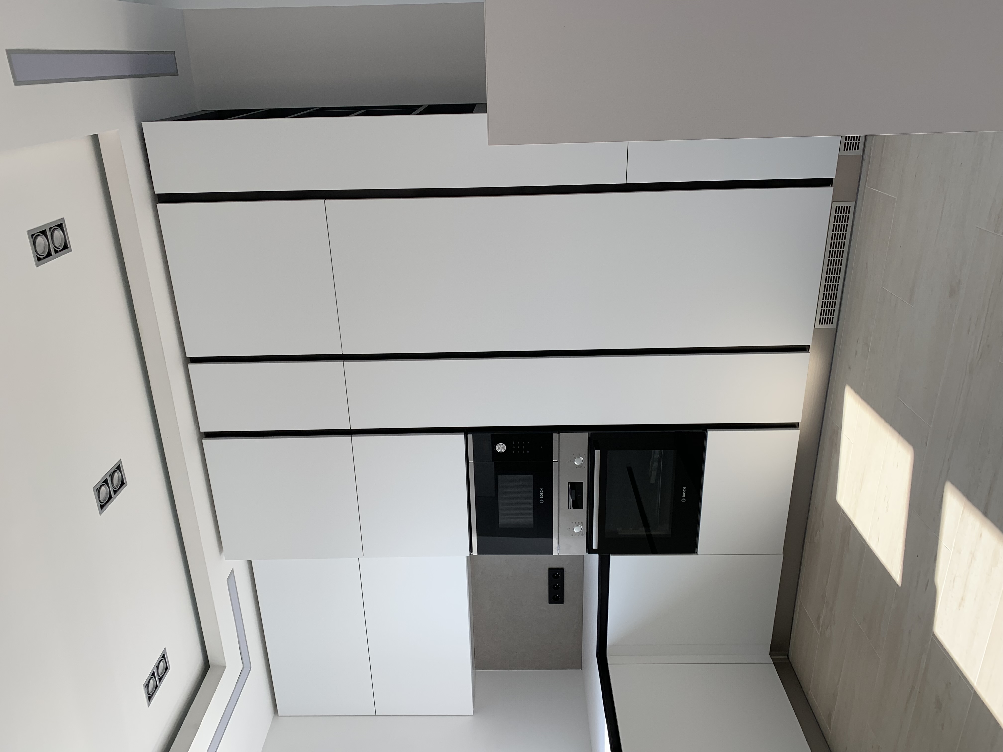 Интегрированные ручки, пенал для техники, вместительные шкафчики.