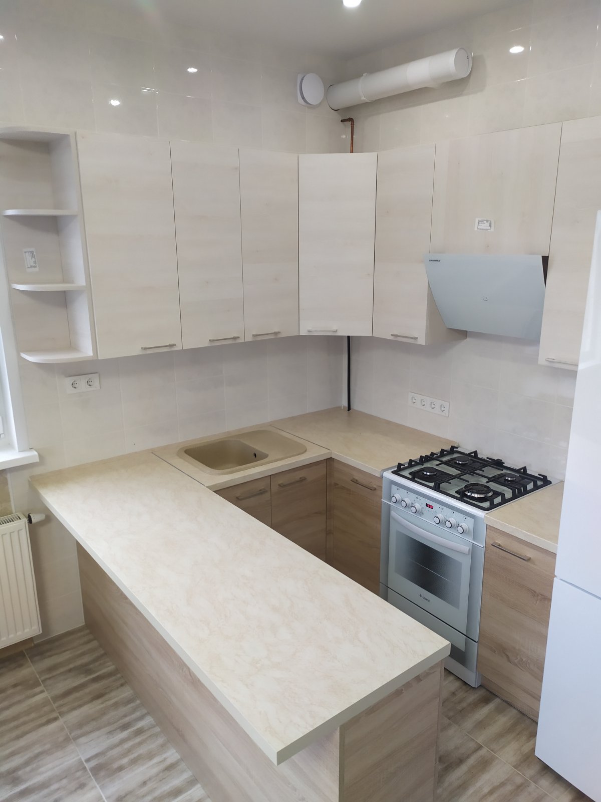 Материал фасада и корпуса: ЛДСП 16 мм. Ширина кухни 130 см.