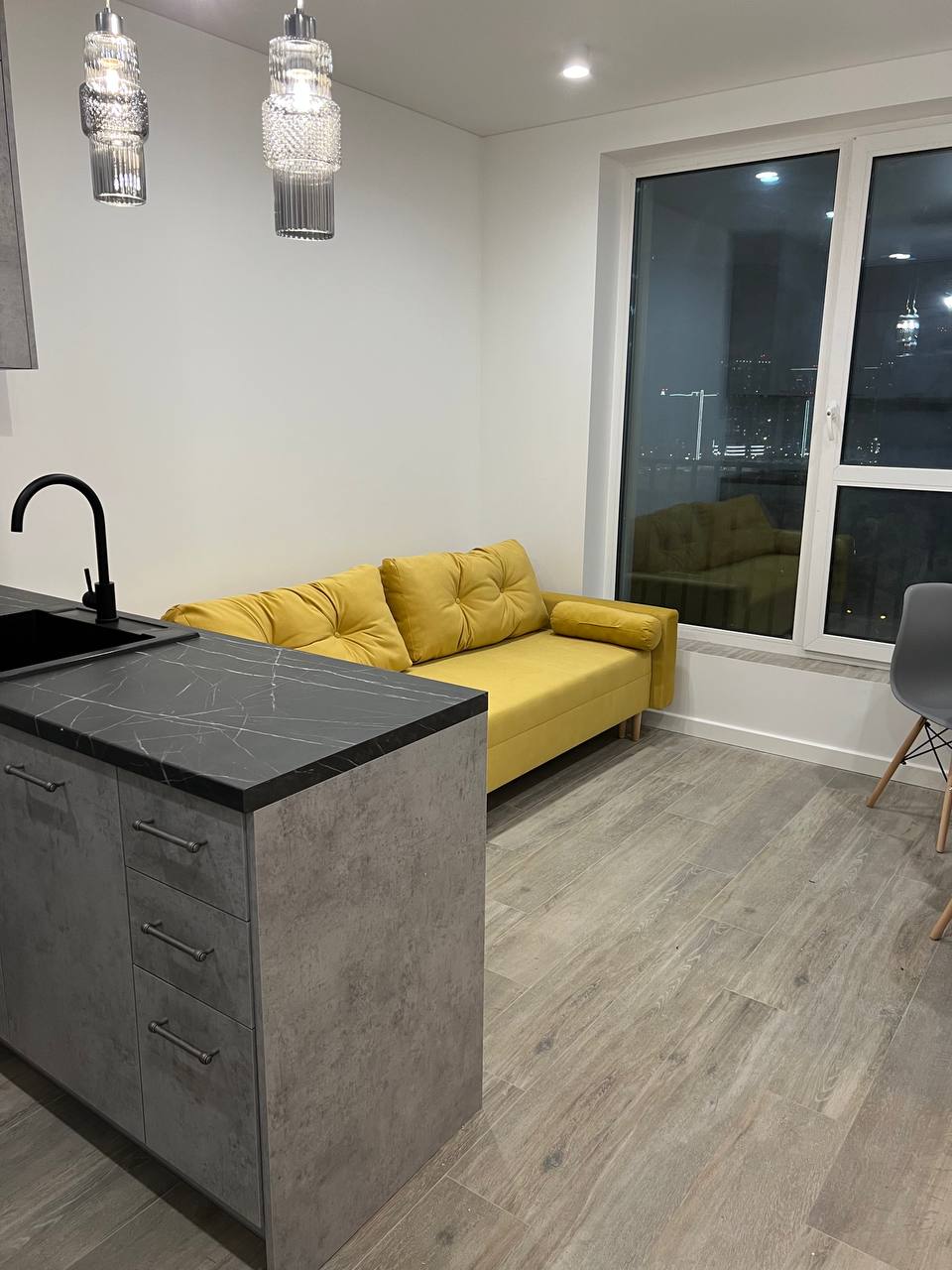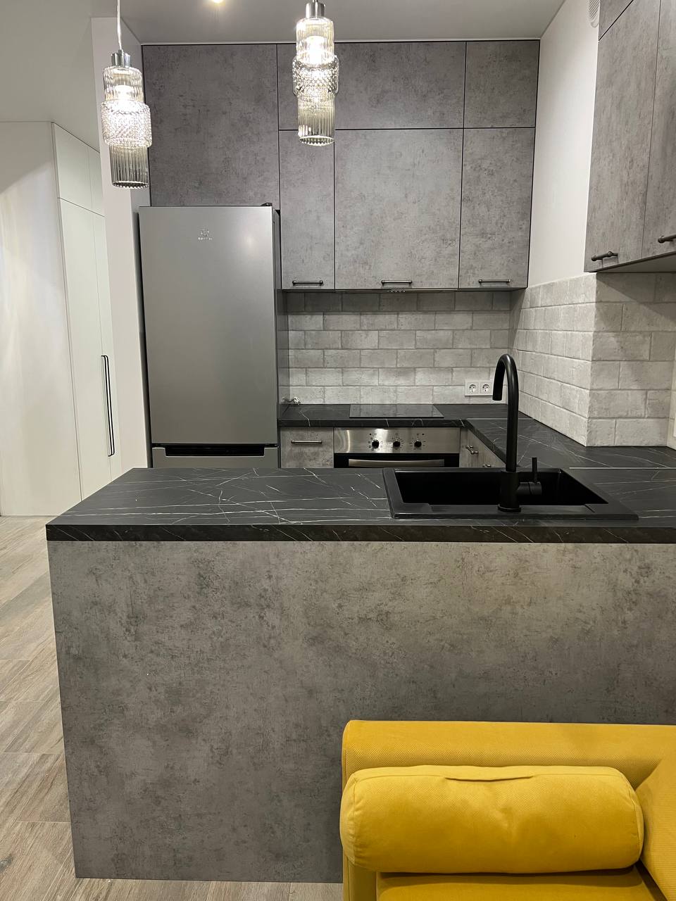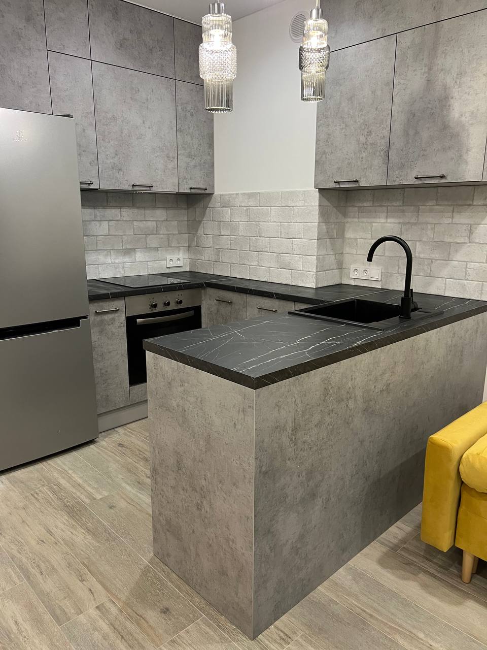 П-образная кухня из ЛДСП Egger с черной столешницей