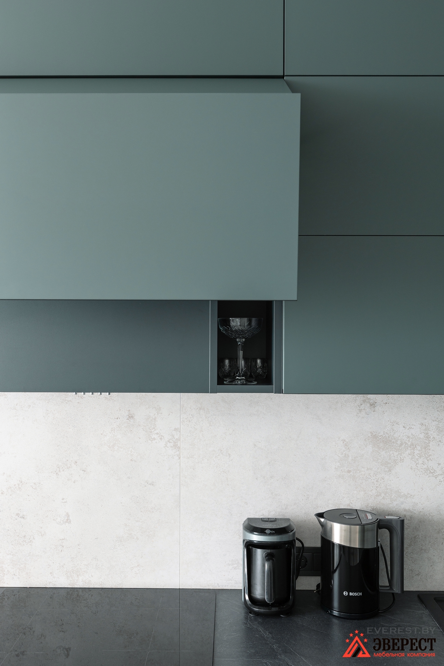 Фасады выполнены из итальянского пластика FENIX 0650 на основе МДФ.