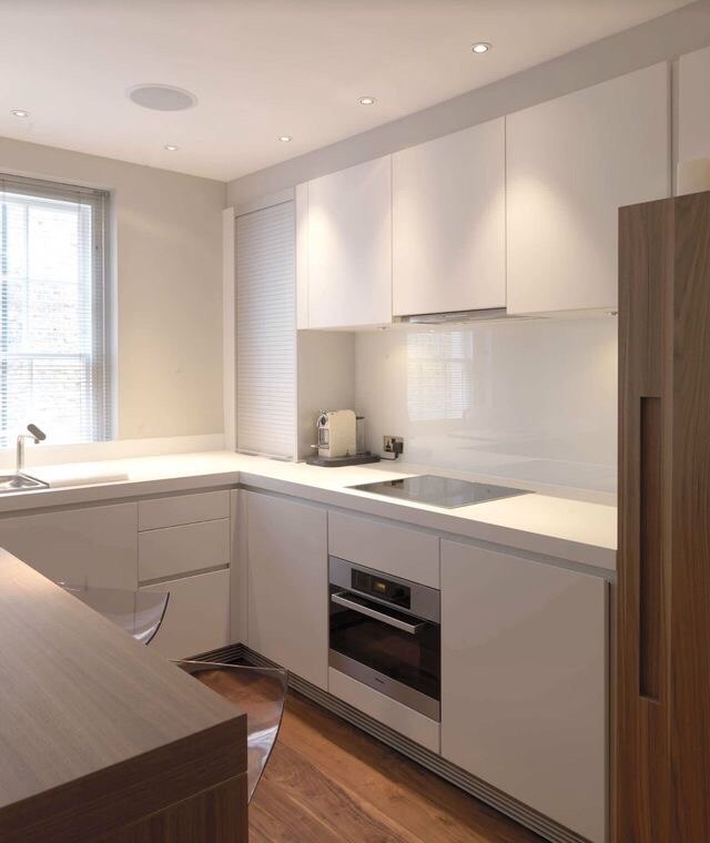 Темный тон столешницы под мрамор. Матовые утонченные ручки.
