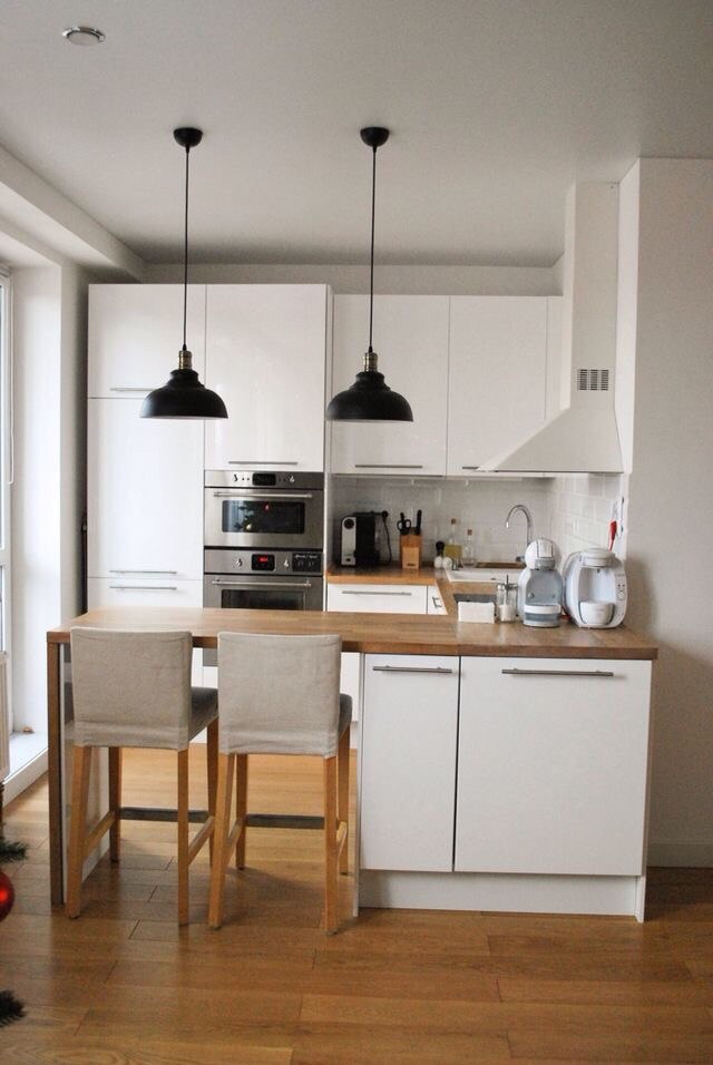 Удобный гарнитур прямой формы. Двухцветные фасады.
