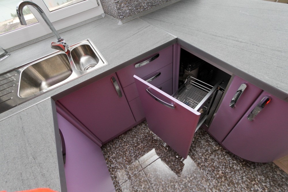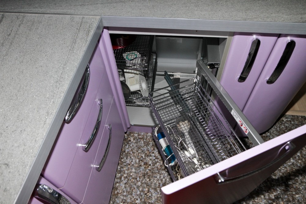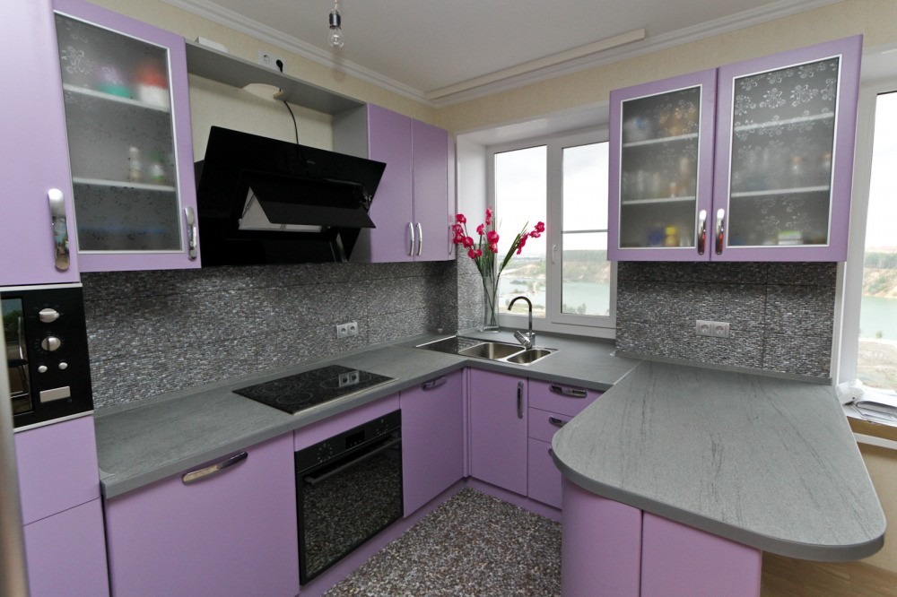 код 140364Сиреневый цвет фасадов. Стеклянные вставки на дверцах.