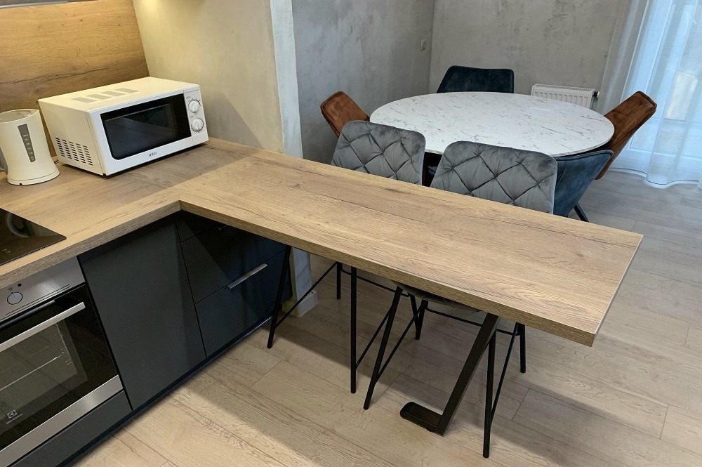Материал фасада и корпуса: ЛДСП 16 мм. Ширина кухни 190 см.