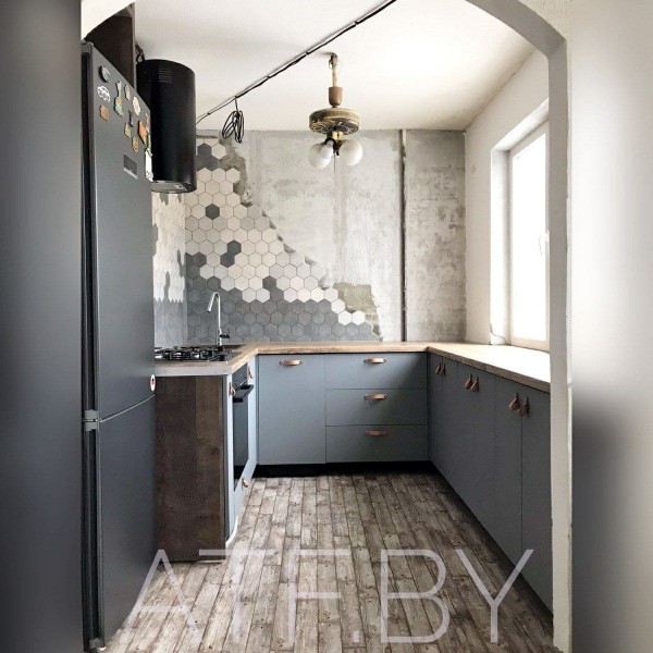 Современная кухня в скандинавском стиле. Светлые фасады из ДСП.