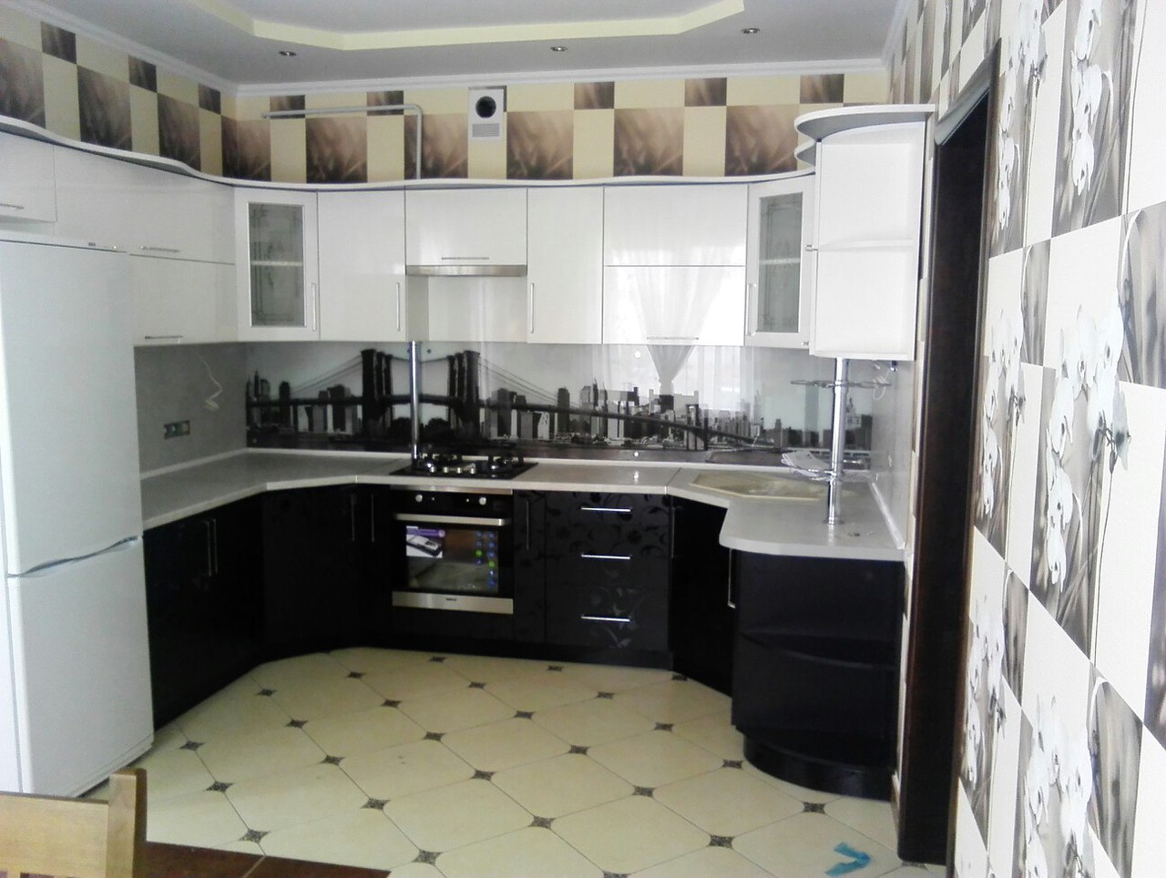 Габаритная угловая кухня с модулем для встраиваемой техники