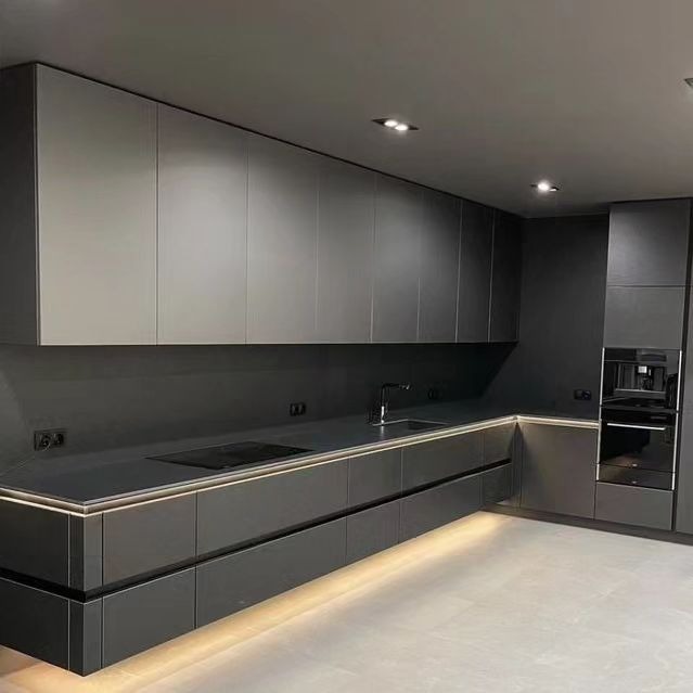 Подвесная кухня серого цвета