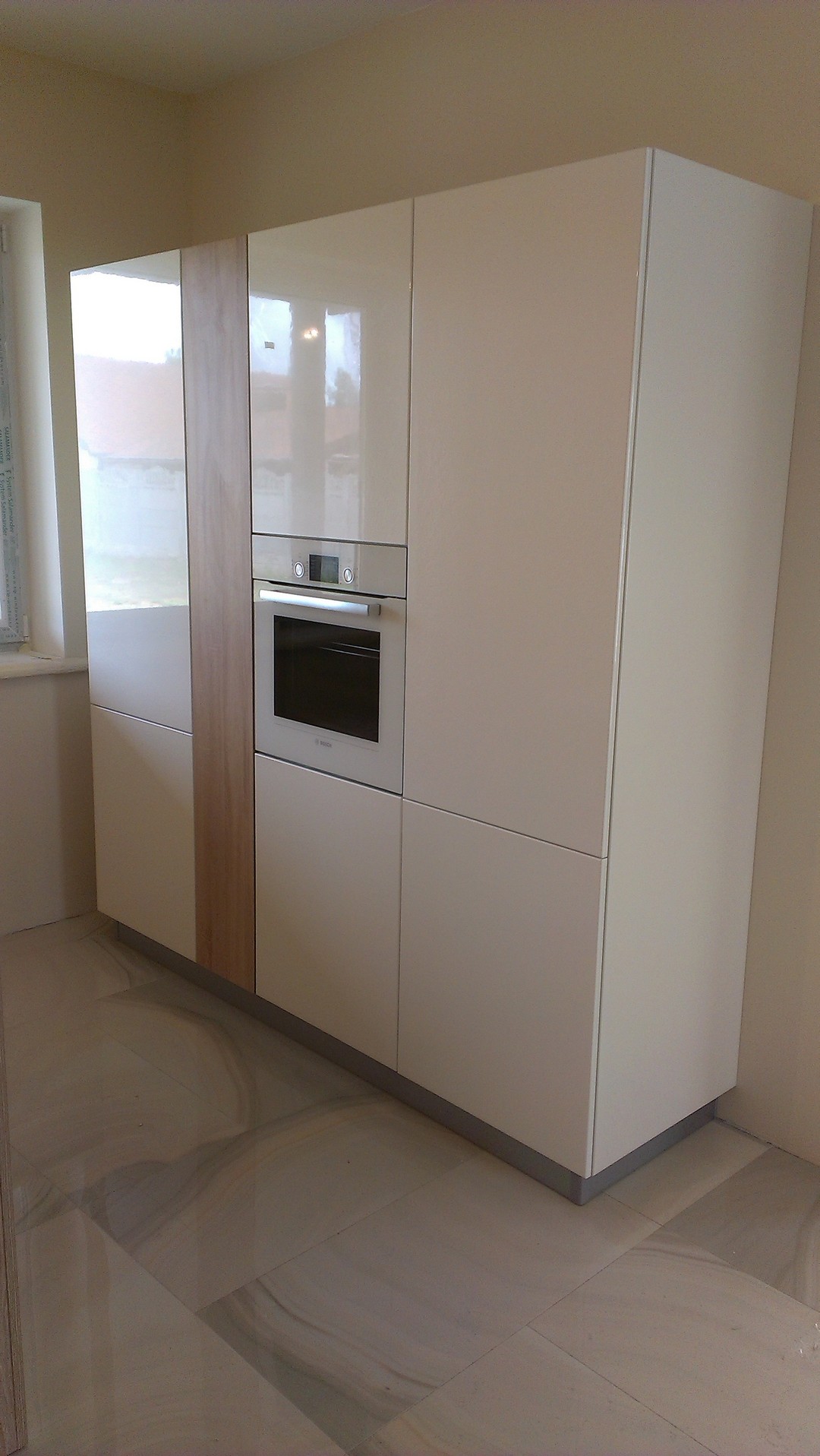 код 84043Белый глянцевый фасад без ручек. Отдельный модуль со встроенной техникой.