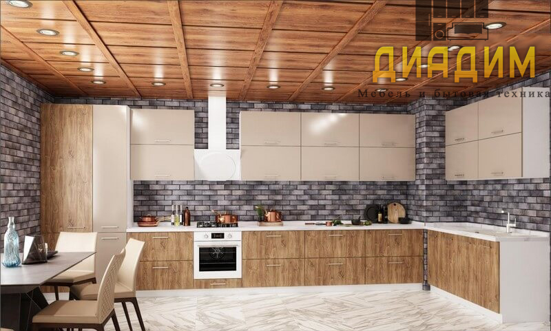 Такая кухня отлично подойдет для просторной квартиры, дачи, офиса или частного дома.
