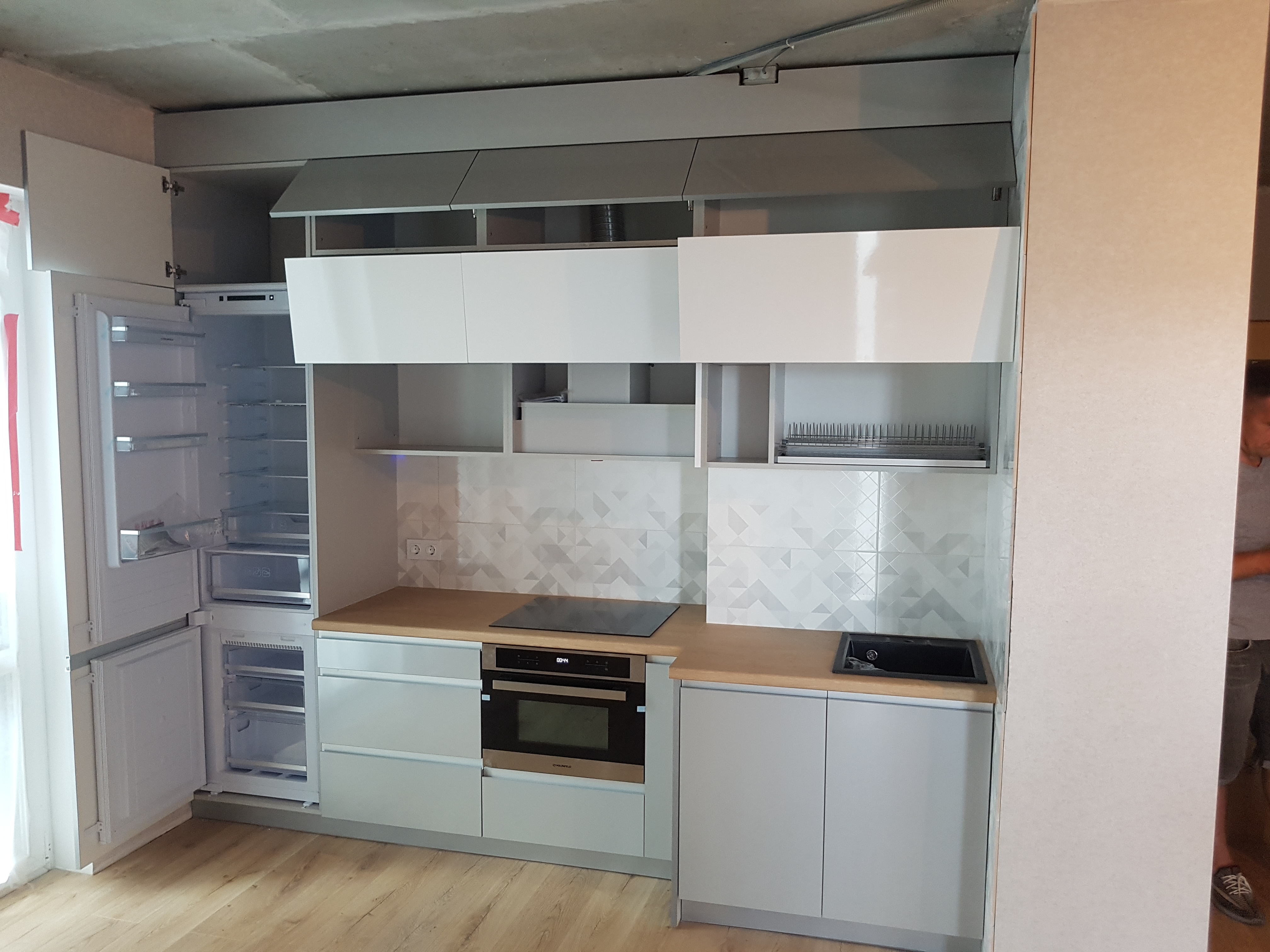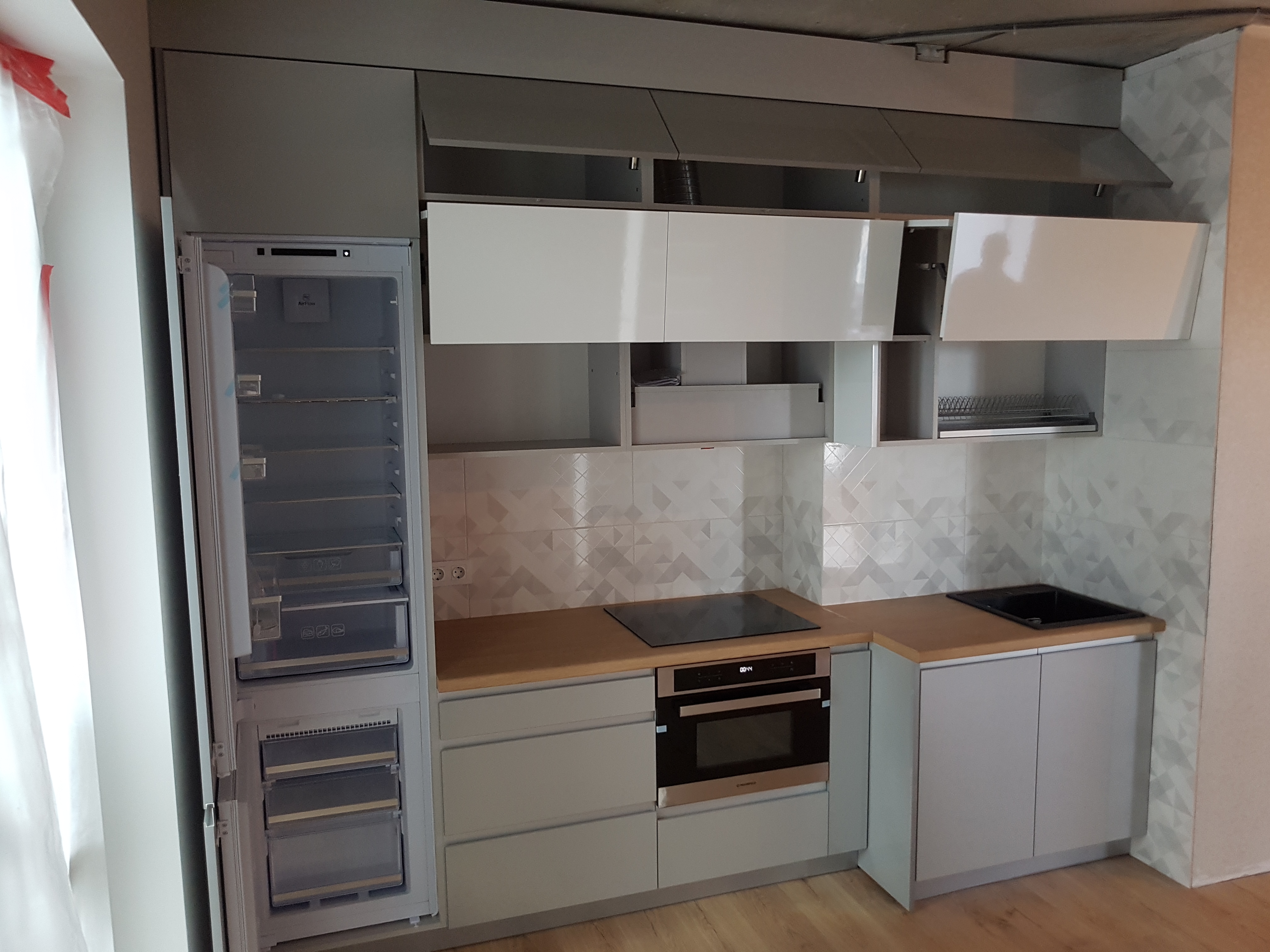- Ниши для встраиваемой техники: кухня спроектирована с учетом размещения встраиваемой техники, что позволяет максимально использовать пространство и создать функциональную рабочую зону.