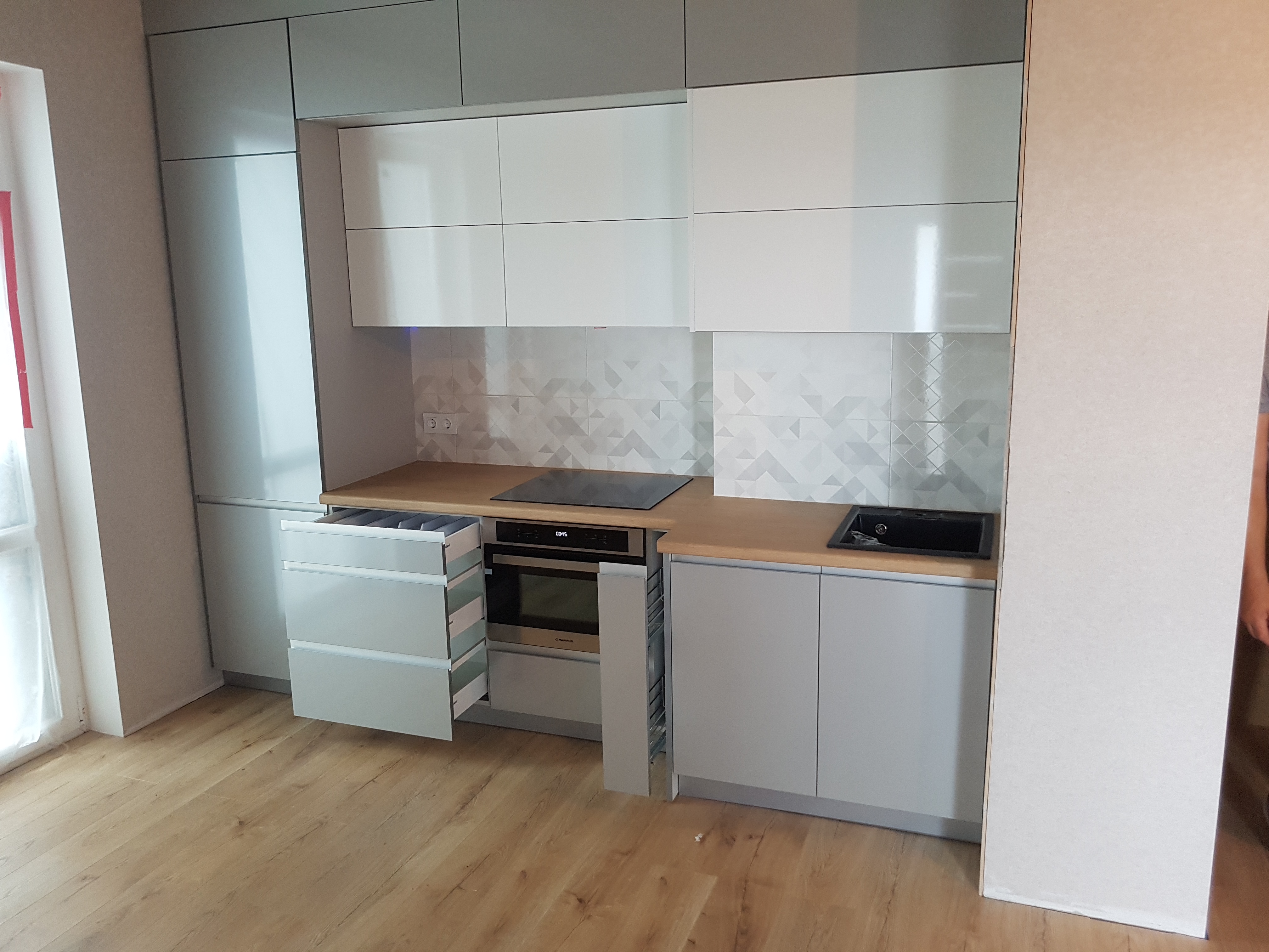 код 108709Современный дизайн. Фасады без ручек. Ниши для встраиваемой техники.