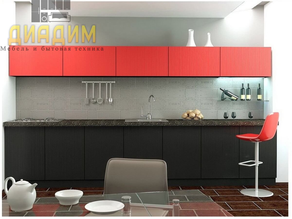 код 95276Элегантные фасады. Красные навесные шкафы, нижние - черные.
