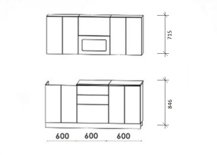 Материал фасада и корпуса: ЛДСП 16 мм. Ширина кухни 140 см.