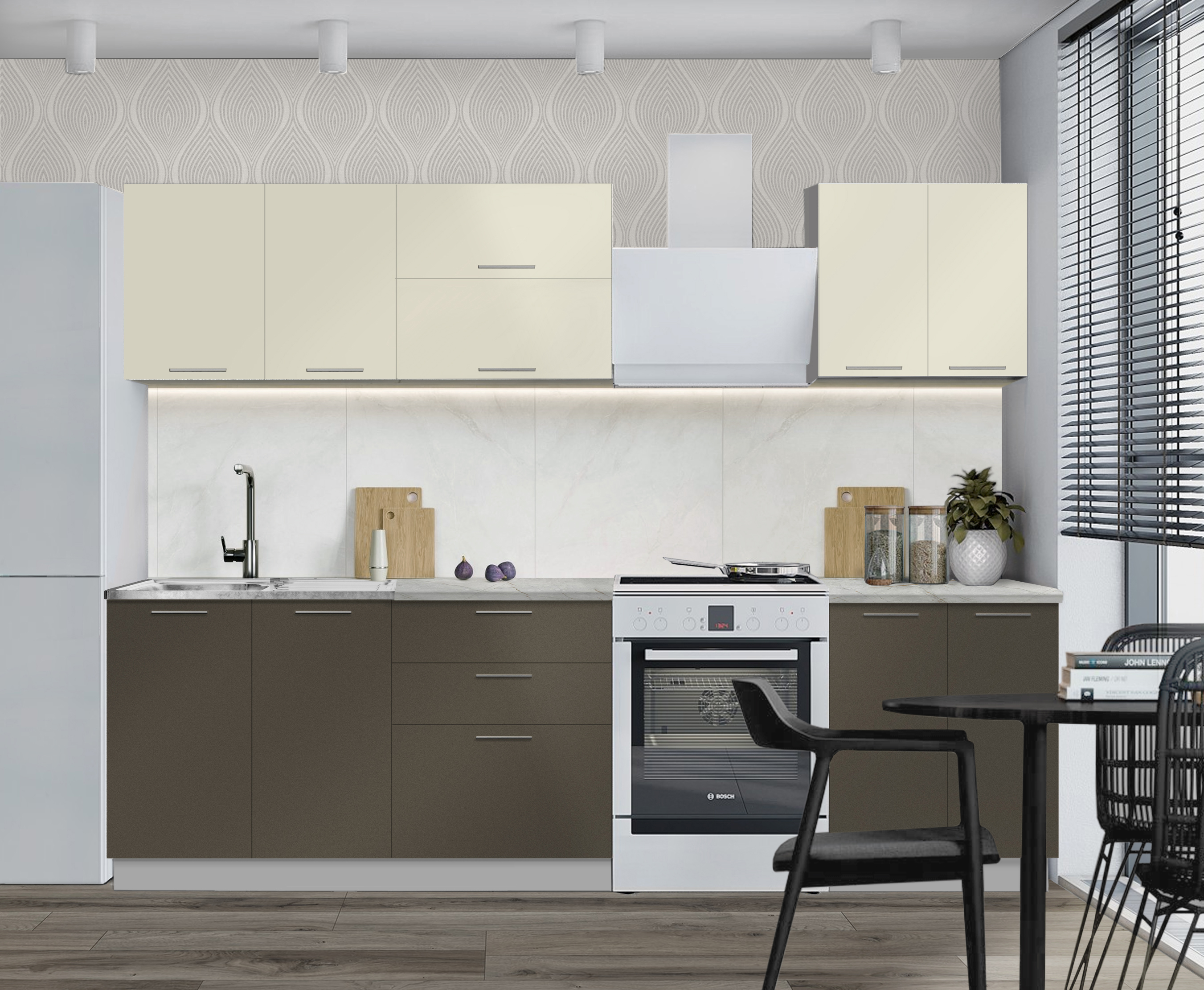 Прямая кухня Оля МДФ 2.2 Велютто Латте/ Велютто Мокко