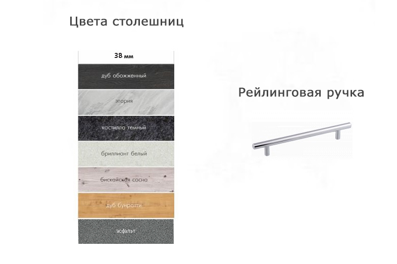 Цвет столешницы на выбор: асфальт, белый, дуб обожженный, этория, кастилло темный, бриллиант белый, бискайская сосна, дуб бунратти.
