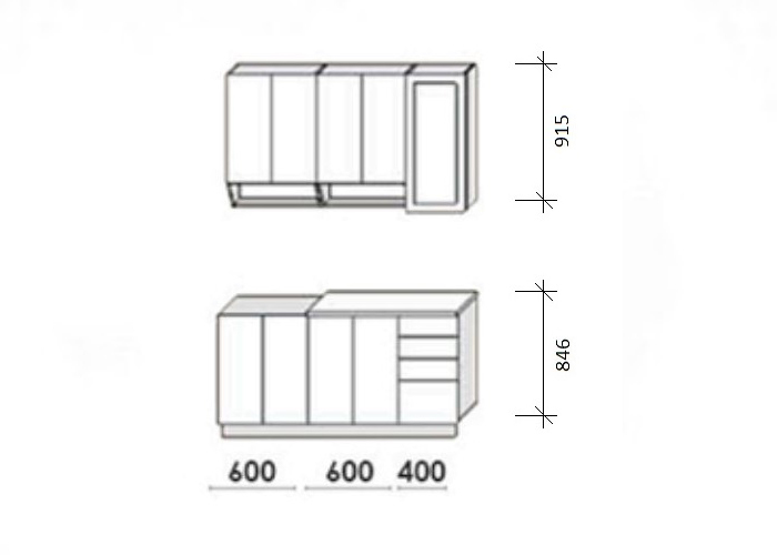 Длина кухни: 1600 мм.