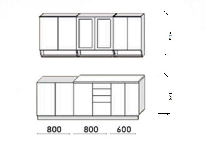 Состоит из модулей 60+60+40. Сушка и мойка не входят в комплект.